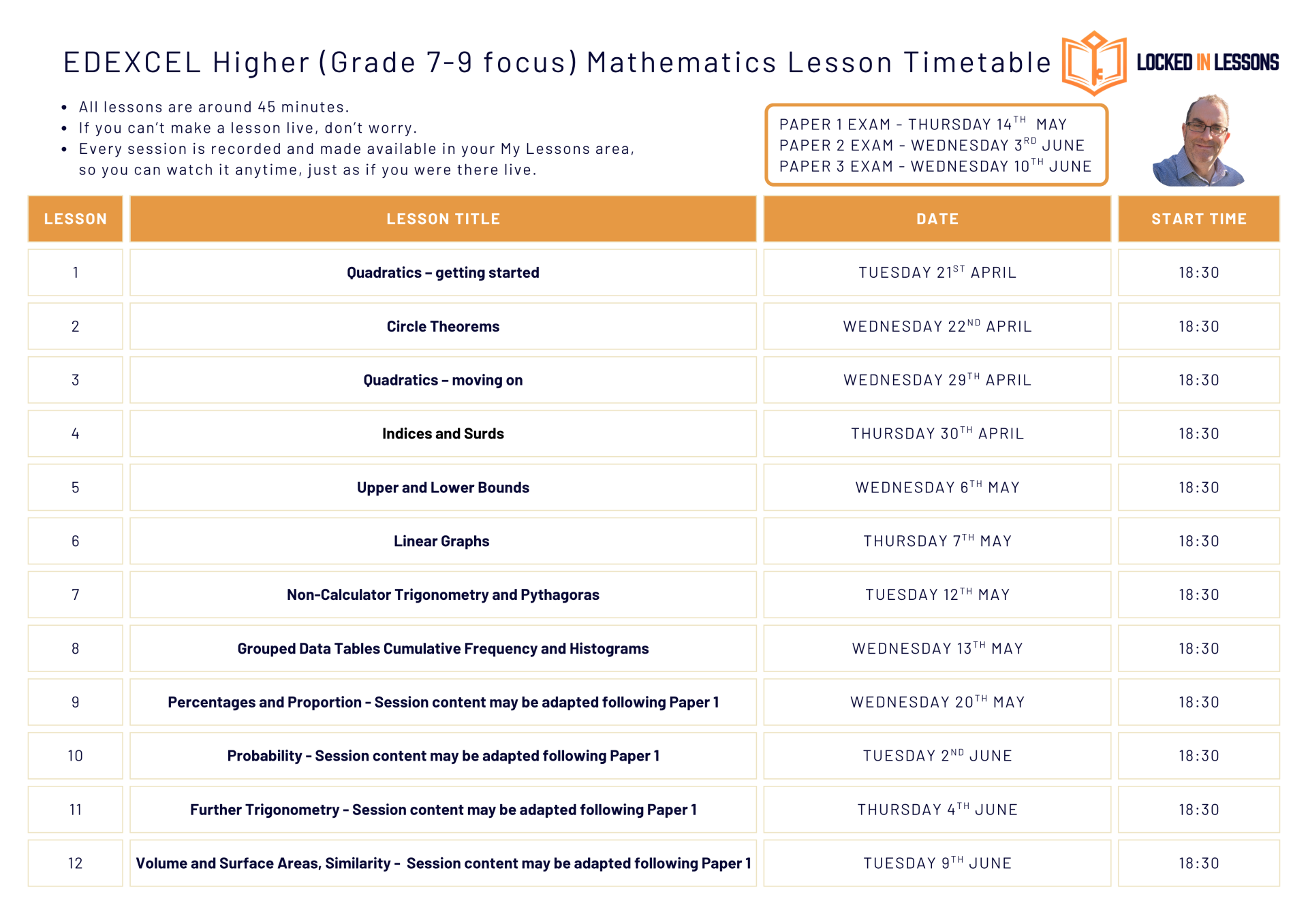 Some lessons may be adjusted after earlier exams to focus on what matters most for the remaining papers.
